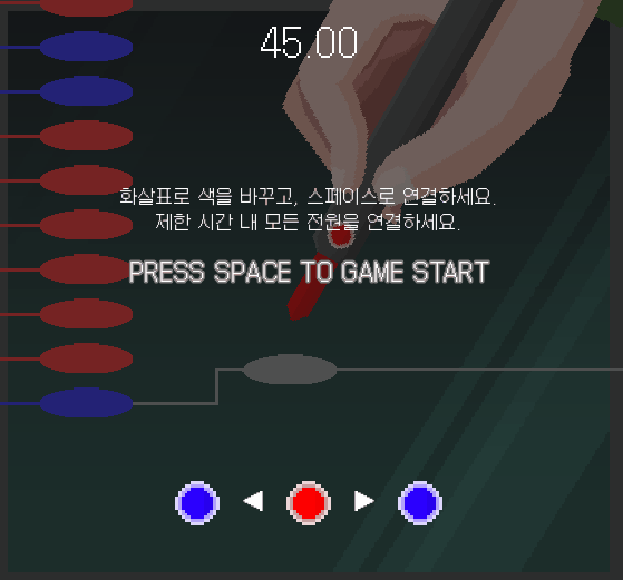 화살표 좌 / 우를 눌러 노드의 색을 바꾸고, 스페이스 키나 클릭으로 연결하는 조작이 이 게임의 전부입니다.