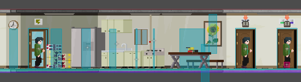 이렇게 필요한 시점마다 방과 오브젝트를 만들고 대사를 연결하는 작업은 상시적으로 진행하였습니다.